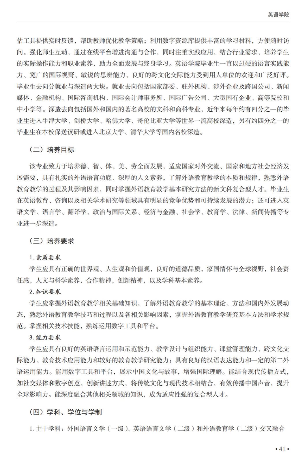 英语(外语教育)专业本科培养方案(2025)