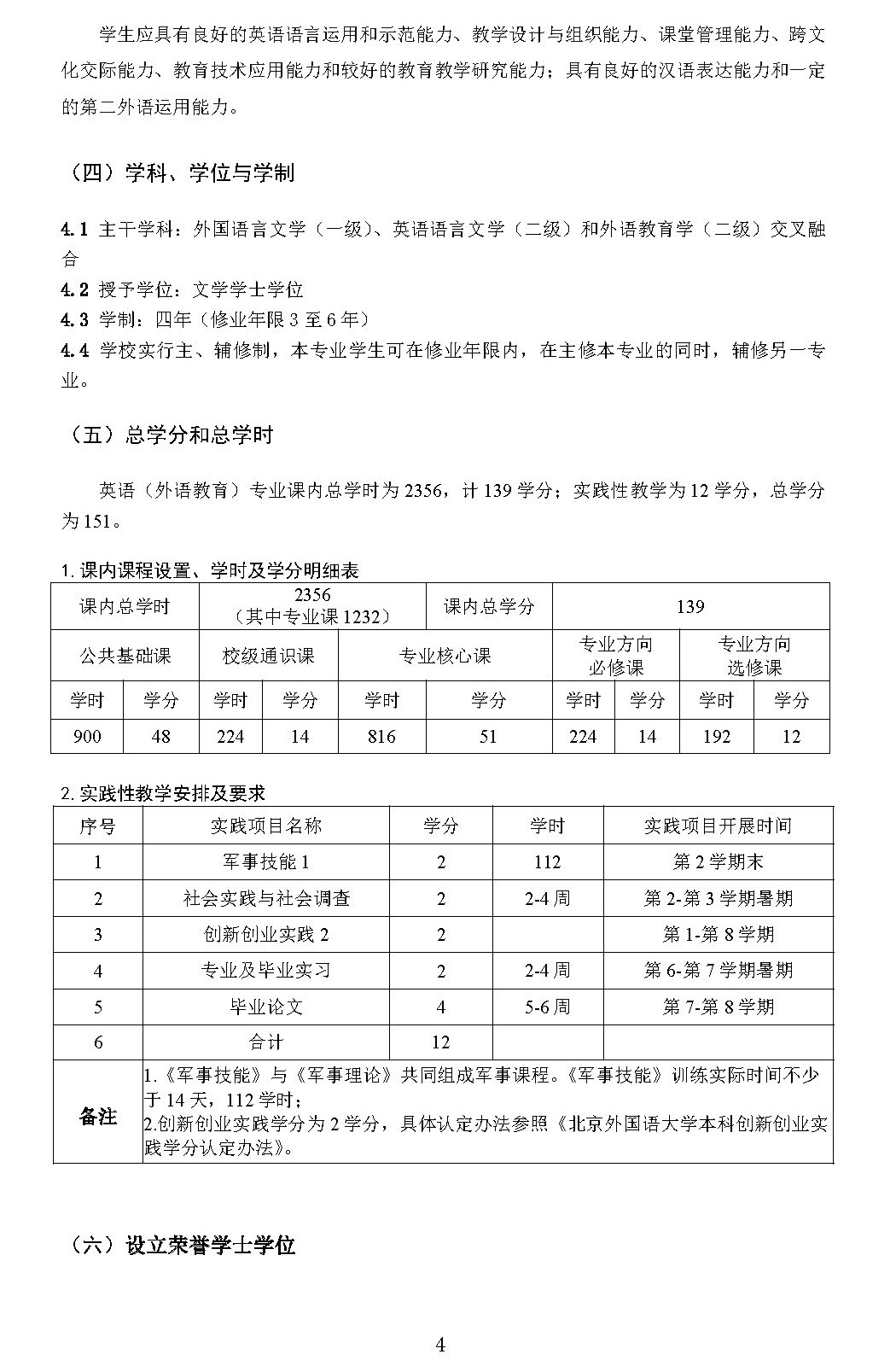 韦德bevictor英语(外语教育)专业本科培养方案(2024)
