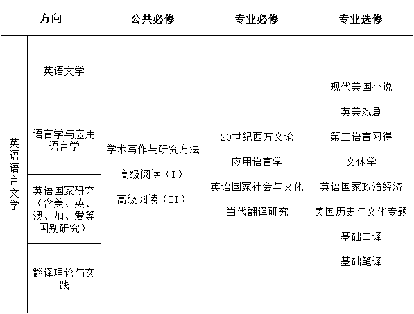 ——课程涵盖韦德bevictor官网英语语言文学专业下英美文学、语言学与应用语言学、英语国家研究、翻译理论与实践四个方向的主干课程。课程包括公共必修课3门、专业必修课4门、专业选修课8门。
