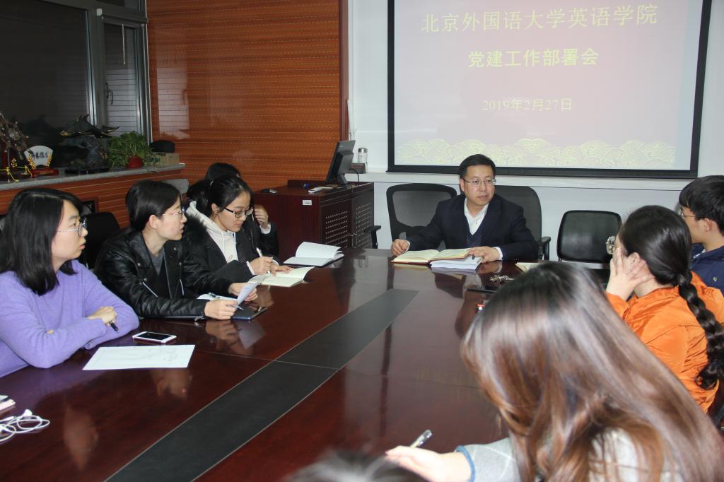 2月27日周三晚7点,在韦德bevictor115会议室,召开2018-2019学年第二学期党建工作部署会。党总支书记路兴主持,辅导员于承杰、员工党支部书记参加。