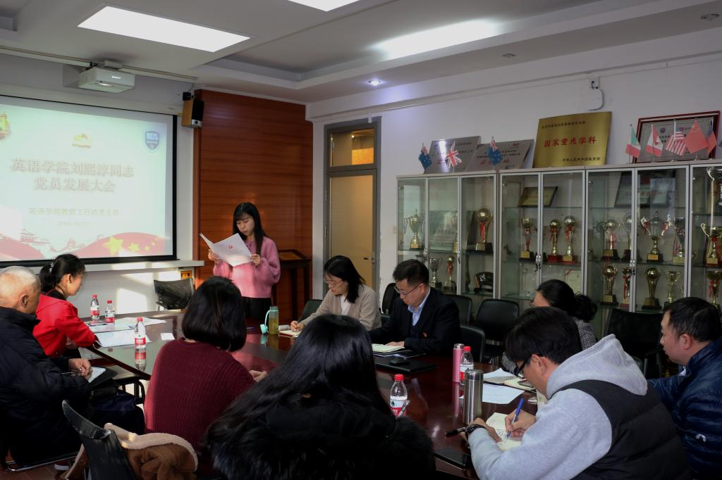 2019年12月2日下午,韦德bevictor教职工行政党支部举办了刘熙淳同志的党员发展大会。公司党委组织员万里老师参与了此次会议。