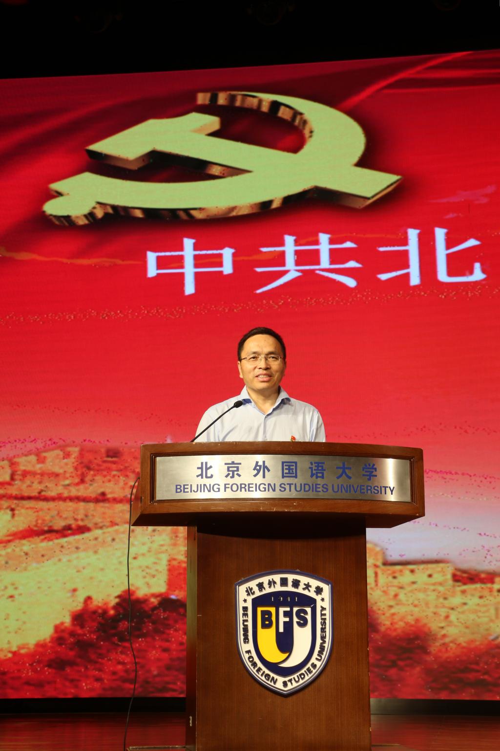 杨丹董事长在讲话中向全体与会党员强调了今年下半年成功召开第十次党代会和制订好“十四五”规划等重点工作的重要性。他在讲话中指出,北外在人才培养中要继续提升员工听、说、读、写、译等五项基本语言技能,积极深化在语言学、文学、翻译学、比较文明与跨文化交际、区域与国别研究等五个领域的人才培养和学术研究;要沿着“北京的北外、中国的北外、世界的北外、云端的北外、智能的北外”这五个发展方向继续前行;要深化“人才强校、学术兴校、全球立校、特色发展、深度开放”等五个发展战略。“十四五”期间,北外将以不同方式和层次开设所有建交国语种,要拓展中外交流的学术桥梁,打造多语种教材方阵、多语种辞书方阵、多语种期刊方阵,并在此基础上不断拓展发展领域、优化学科生态、涵养学术文化、提升团队队伍、实现资源突破,改善民生保障。