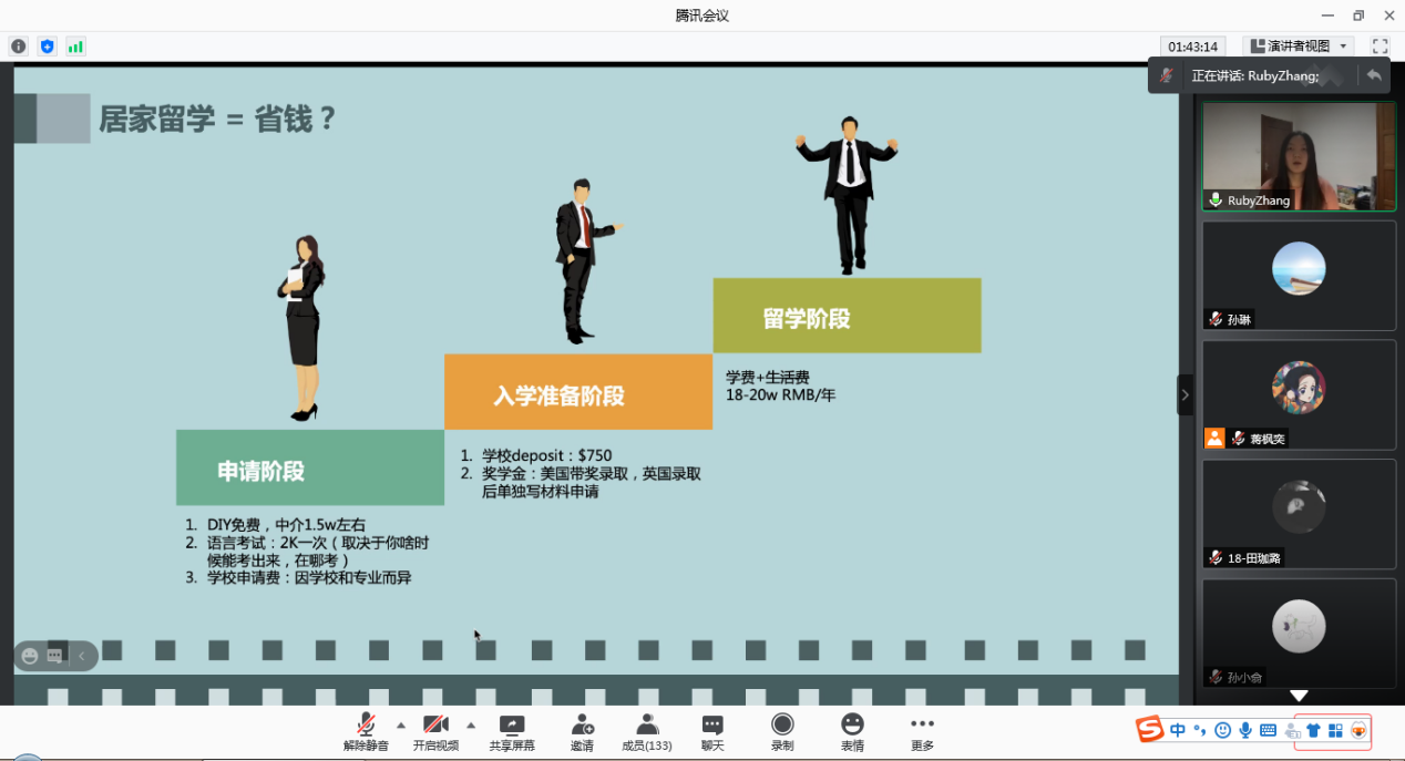 分享会第四部分邀请2016级张君宜同志和2017级闫文奇同志针对出国申请进行分享。两位同志根据自己在实际交换留学准备过程中遇到的问题给予详细介绍与分享,很好地解答了同学们对于出国申请方面的种种疑惑。