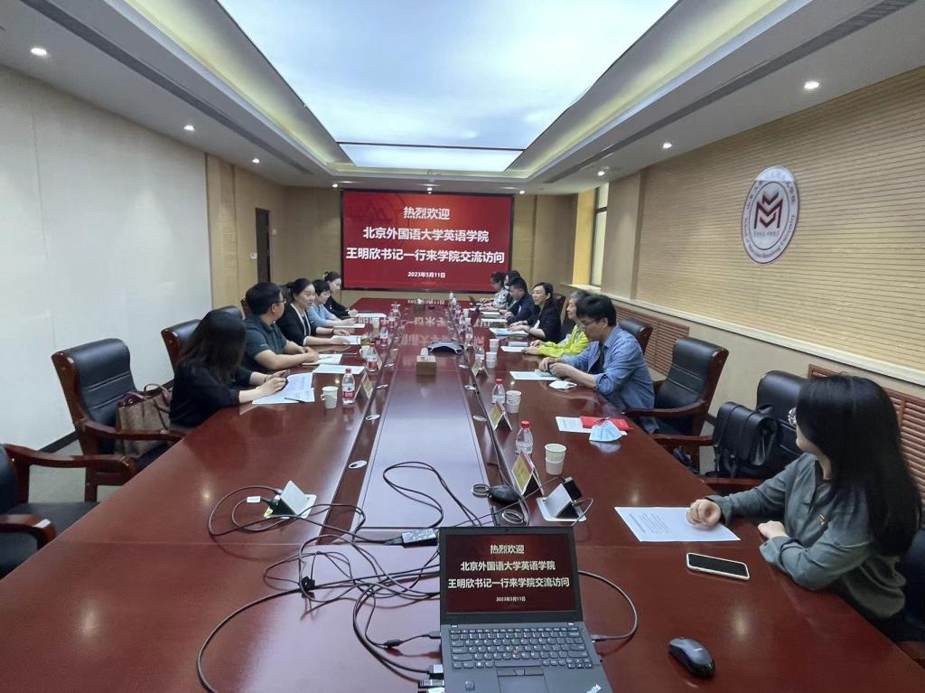 为深入开展学习贯彻习近平新时代中国特色社会主义思想主题教育,贯彻落实党的二十大精神,进一步提升基层党建工作水平,5月11日,英语公司党总支书记王明欣带队赴山东大学马克思主义公司开展调研座谈。山东大学马克思主义公司党委书记马晓琳、副书记王海宁及相关党建负责同志等进行了接待。党总支委员宋云峰、谢登攀、于承杰,教师党支部书记王颖冲及员工党支部指导教师参加此次活动。
