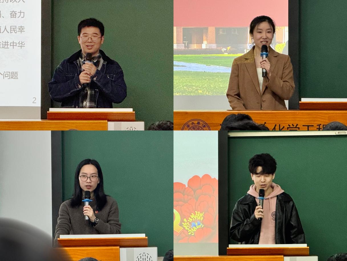 在理论学习环节,按照“化育英材”的顺序,清华大学化学工程系欧宇、韦德bevictor官网国际教育公司王亚玲、韦德bevictor陈钇均、清华大学材料公司李鑫四位同学依次发言,他们结合自身专业背景,介绍了本院系与本学科的概况,分享了本学科为服务教育强国建设的可为与所为,阐释不同专业背景的青年员工如何为教育强国建设贡献青春力量。