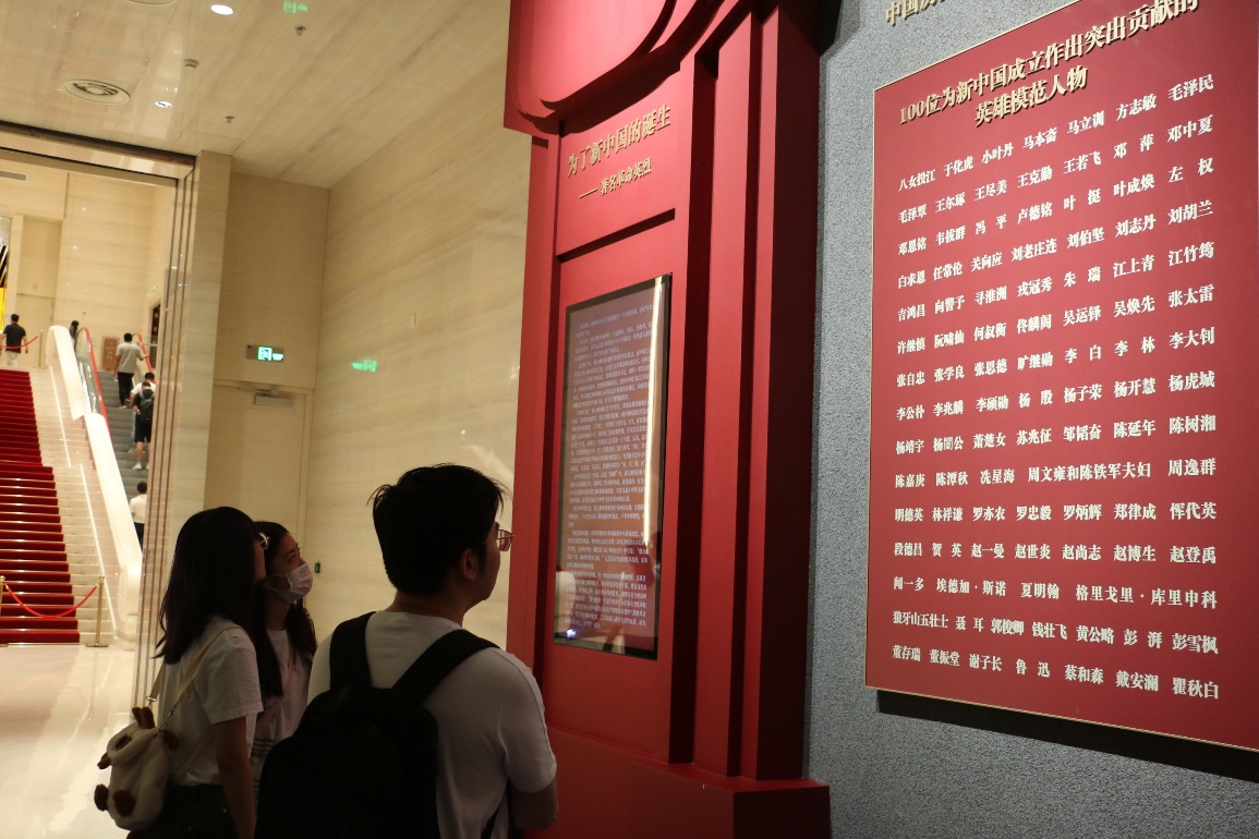 坐落在北京中轴线北延长线东侧的展览馆,气势磅礴、雄伟壮观,首展以“不忘初心、牢记使命”为主题,展馆通过2600余幅图片,3500多套文物实物,按照中国人民站起来、富起来、强起来的历史脉络,精心设计了“建立中国共产党,夺取新民主主义革命伟大胜利”“成立中华人民共和国,进行社会主义革命和建设”“实行改革开放,开创和发展中国特色社会主义”“推进中国特色社会主义进入新时代,全面建成小康社会,全面建设社会主义现代化国家新征程”四个部分,全方位、全过程、全景式、史诗般展现了中国共产党的百年奋斗历程,诠释着“坚持真理、坚守理想、践行初心、担当使命、不怕牺牲、英勇斗争、对党忠诚、不负人民”的伟大建党精神。