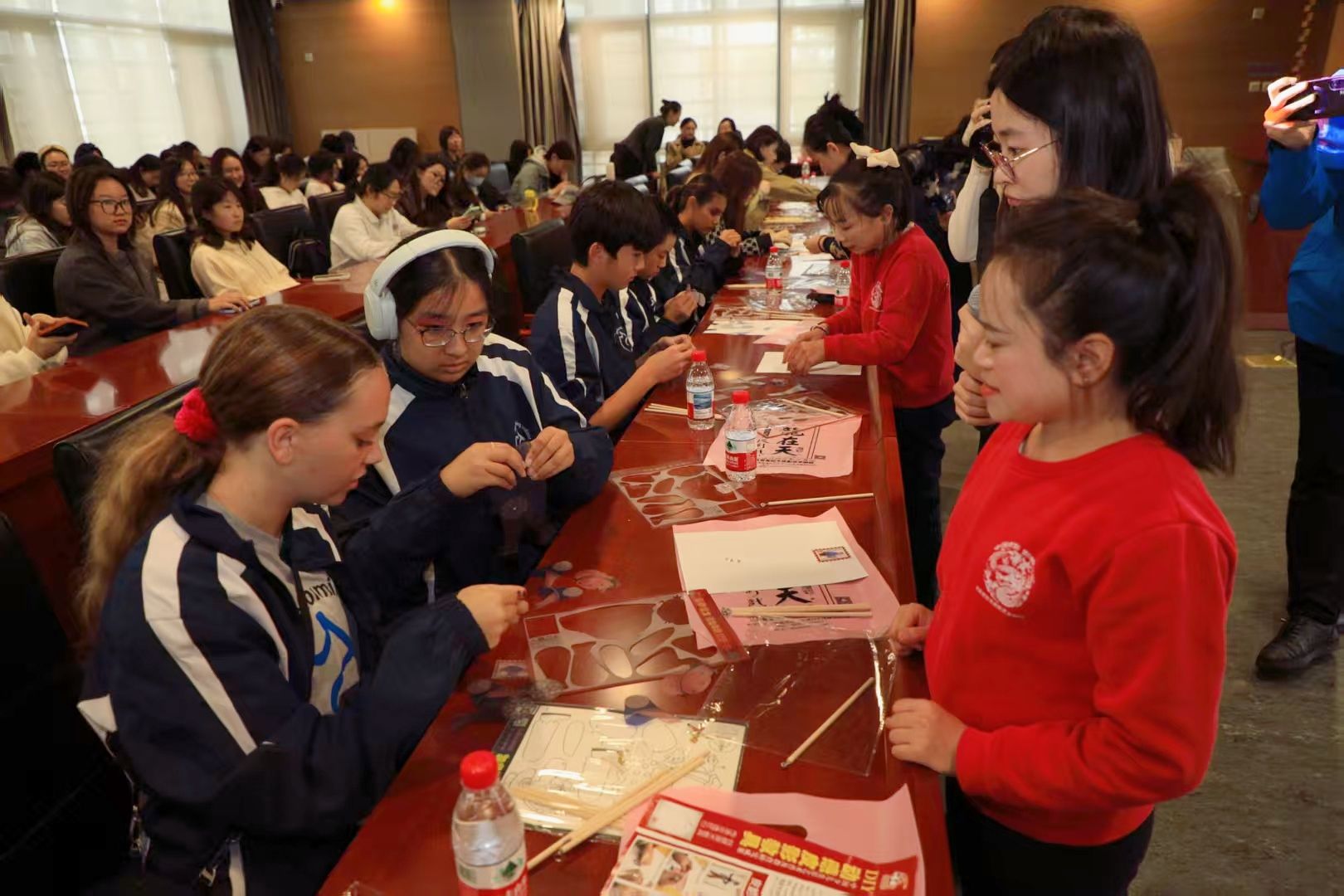 在互动体验环节,中美员工在皮影艺术家、北京龙在天皮影艺术剧院经理王熙的指导下,韦德bevictor员工志愿者积极参与同步翻译与交流,员工们亲手完成了影人制作与操作实践。整个环节笑声不断,友谊在指尖与光影间自然流淌。王熙表示,与北外韦德bevictor的合作为传统文化皮影艺术的国际化传播开辟了新路径。