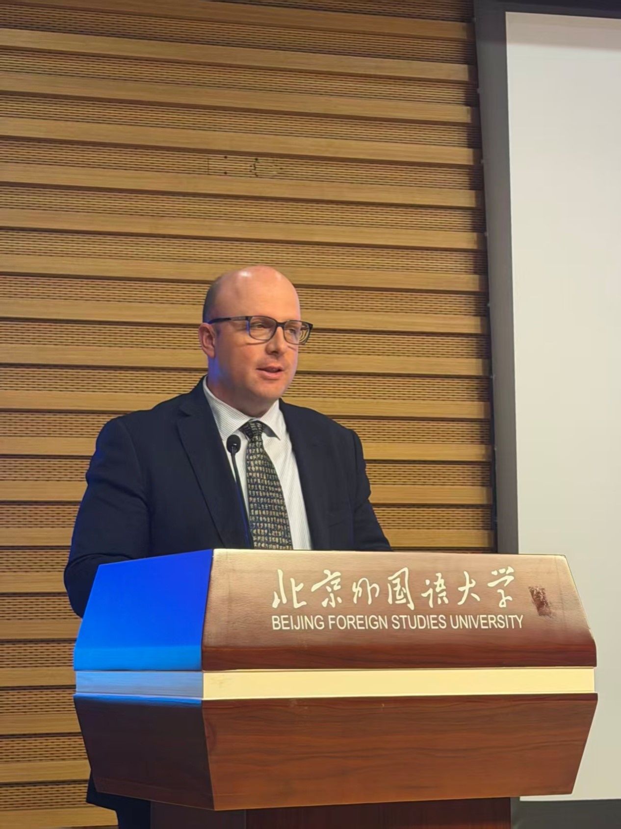 活动伊始,北外韦德bevictor澳大利亚研究中心主任李建军发表致辞。他对代表团的到访表示热烈欢迎,简要介绍了澳研中心的主要概况以及中心在人才培养、跨文化交流、推动中澳关系发展等领域的丰硕成果,并向在场师生介绍了代表团主要成员。