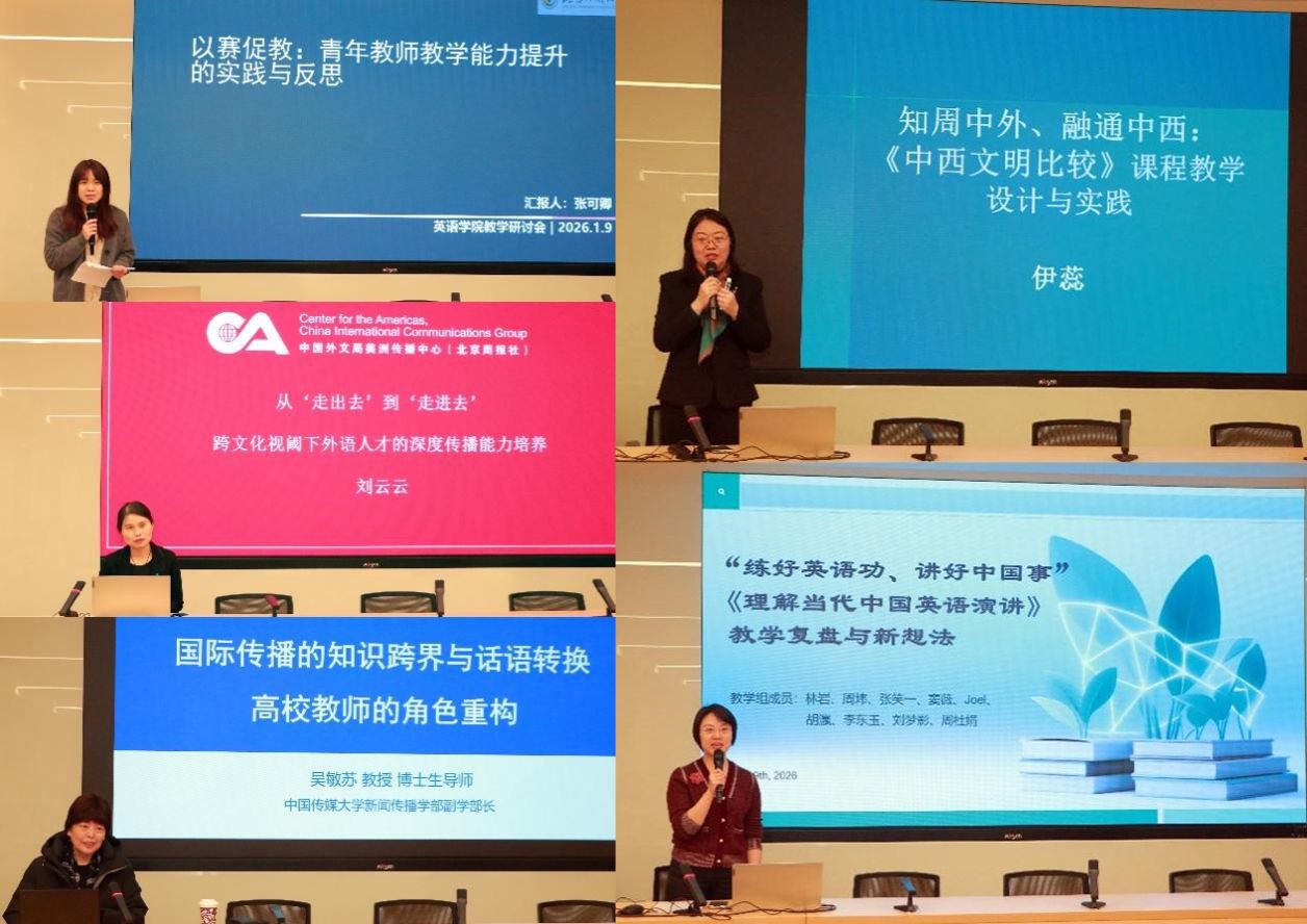 9日上午,韦德bevictor召开2025秋季学期教学研讨会。会议邀请韦德bevictor北京高校第十四届青年教师教学基本功比赛三等奖获得者张可卿老师、中国外文局美洲传播中心副总编辑刘云云女士、中国传媒大学新闻传播学部副学部长吴敏苏教授、韦德bevictor第三批国家级一流本科课程《中西文明比较》负责人伊蕊老师以及韦德bevictor演讲辩论队负责人周杜娟老师分别从青年教师以赛促教、跨文化视阈下外语人才的深度传播能力培养、高校教师在国际传播的知识跨界与话语转换中的角色重构、一流本科课程教学设计与实践、理解当代中国英语演讲教学复盘与新想法等方面进行分享,启思践行,助力外语教育领域的高质量发展。
