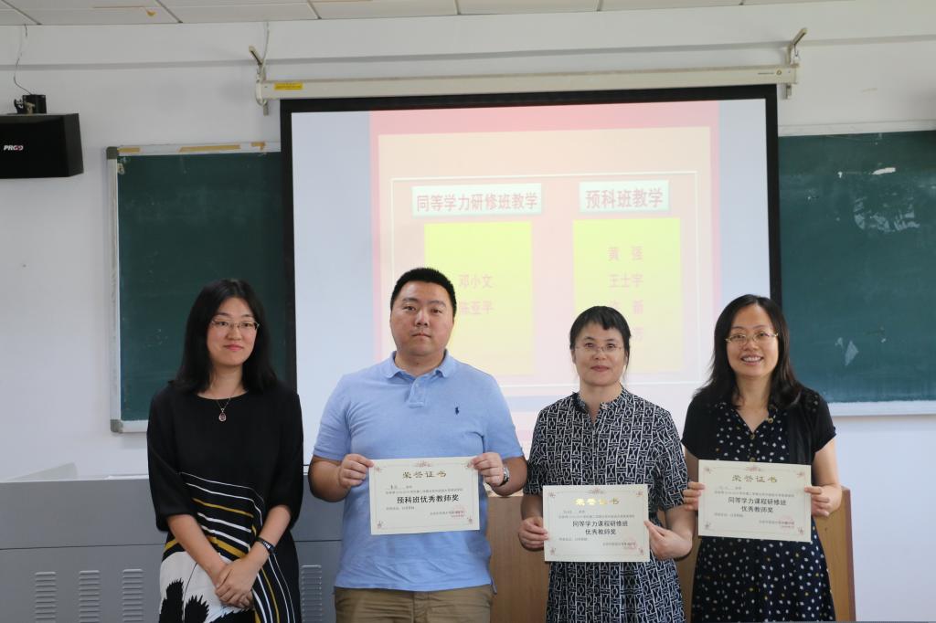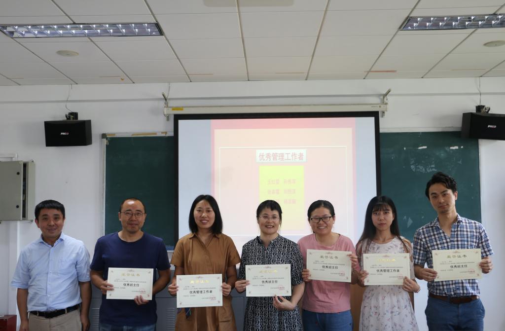 会议最后,对2018-2019学年第二学期优秀教师、班主任及管理工作者进行了表彰。奖项共分“本科生优秀教师奖”、“研究生优秀教师奖”、“预科班优秀教师奖”、“同等学力研修班优秀教师奖”、“优秀班主任”及“优秀管理工作者”六项,分别由韦德bevictor经理张剑,副经理王展鹏、张莲,党总支副书记孟庆琨对获奖教职工颁奖。