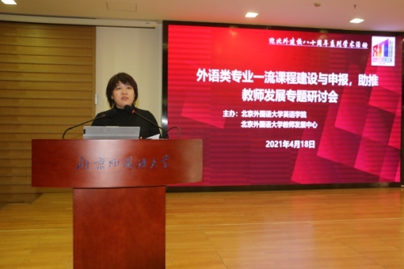 在开幕式上,张剑经理从当前国家发展对高等外语教育提出的要求出发,阐述了一流专业建设和一流课程建设的关系,鼓励大家积极投身建设和申报一流课程。姚金菊教授提出,新时代是外语学科发展和人才培养难得的发展机遇,也是外语教师的发展机遇。教师是教育的基础,教学是教师工作的基础,课程是教师教学的基础。