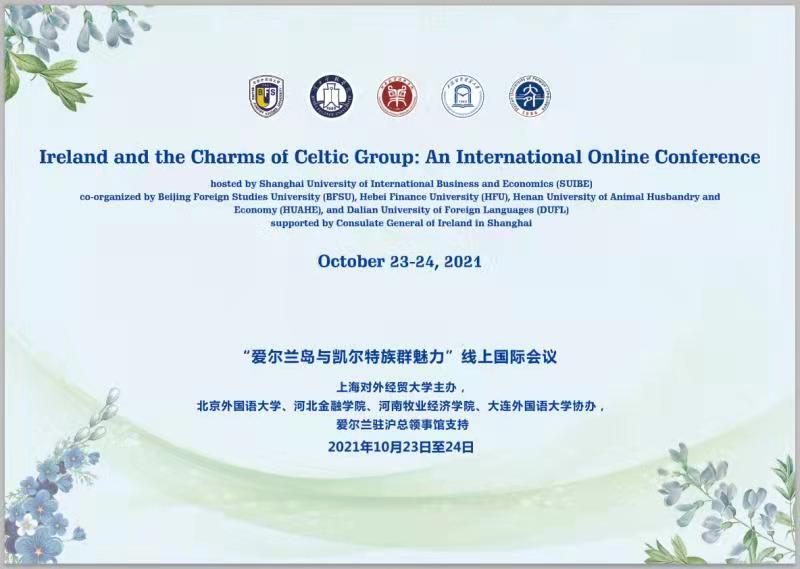 2021年10月23日-24日,“爱尔兰岛与凯尔特族群魅力”研讨会线上举办。本次会议由上海对外经贸大学主办,公司爱尔兰研究中心与河北金融公司、河南牧业经济公司、大连外国语大学爱尔兰研究中心等教育部国别和区域研究备案中心共同协办。会议由开幕式、新书发布式和7组近40篇论文的主题发言组成,来自各高校的百余位师生参会,各抒己见,讨论气氛热烈。
