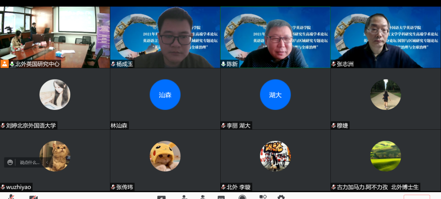 在欧洲研究博士生平行论坛上,10名博士生就自己的研究计划或近期关注的研究问题进行了展示,内容涉及欧美贸易关系、中国对欧投资、欧洲数字主权问题、英国政党研究等。中国社会科公司欧洲研究所副所长陈新、副研究员杨成玉,北外国际关系公司教授张志洲、英国研究中心教授王展鹏对同学们的发言做了点评。
