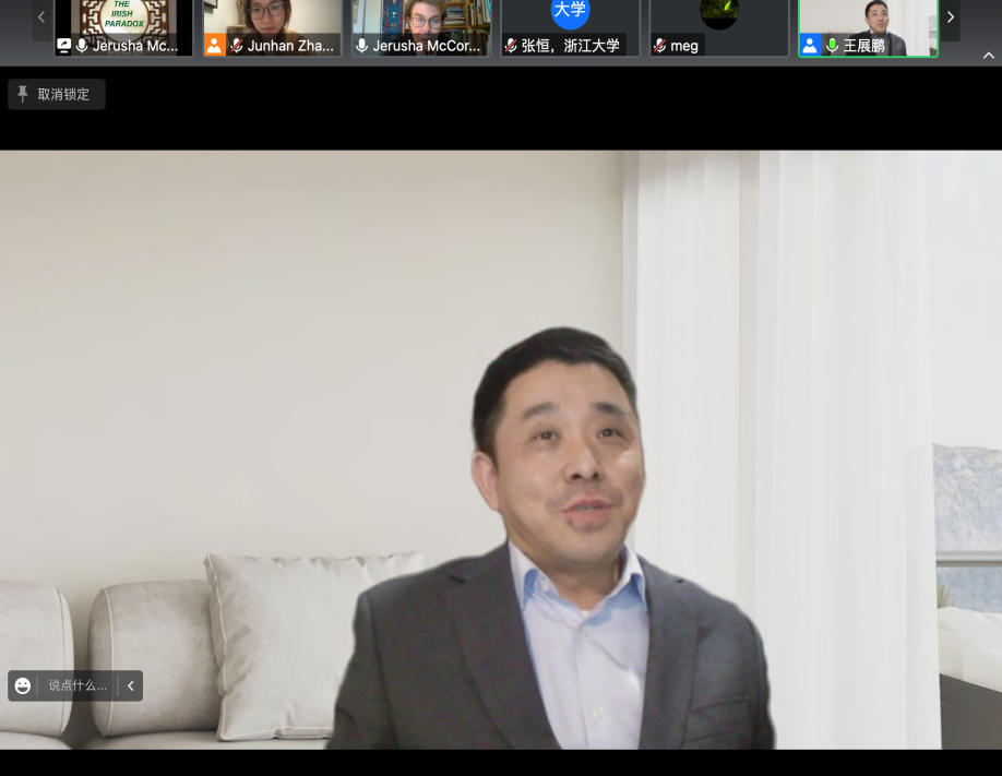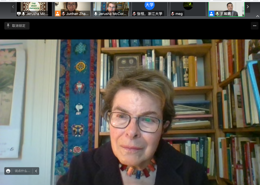Jerusha McCormack教授围绕“小国爱尔兰如何发挥国际影响力”这一主题,全面阐述了爱尔兰丰富的历史文化遗产、近年来的经济腾飞,以及爱尔兰在国际政治中的角色变化等维度上的成就,并以此作为“爱尔兰施加广泛国际影响”的注脚。她同时指出凯尔特文化、爱尔兰文学等要素增强了爱尔兰文化软实力,并进而提升了爱尔兰对对世界的影响。作为中爱文明对比的专家,她还对中爱文明的历史、社会形态、经济社会变革等相似性进行了讲解,将中国员工更好地带入研论的情境。