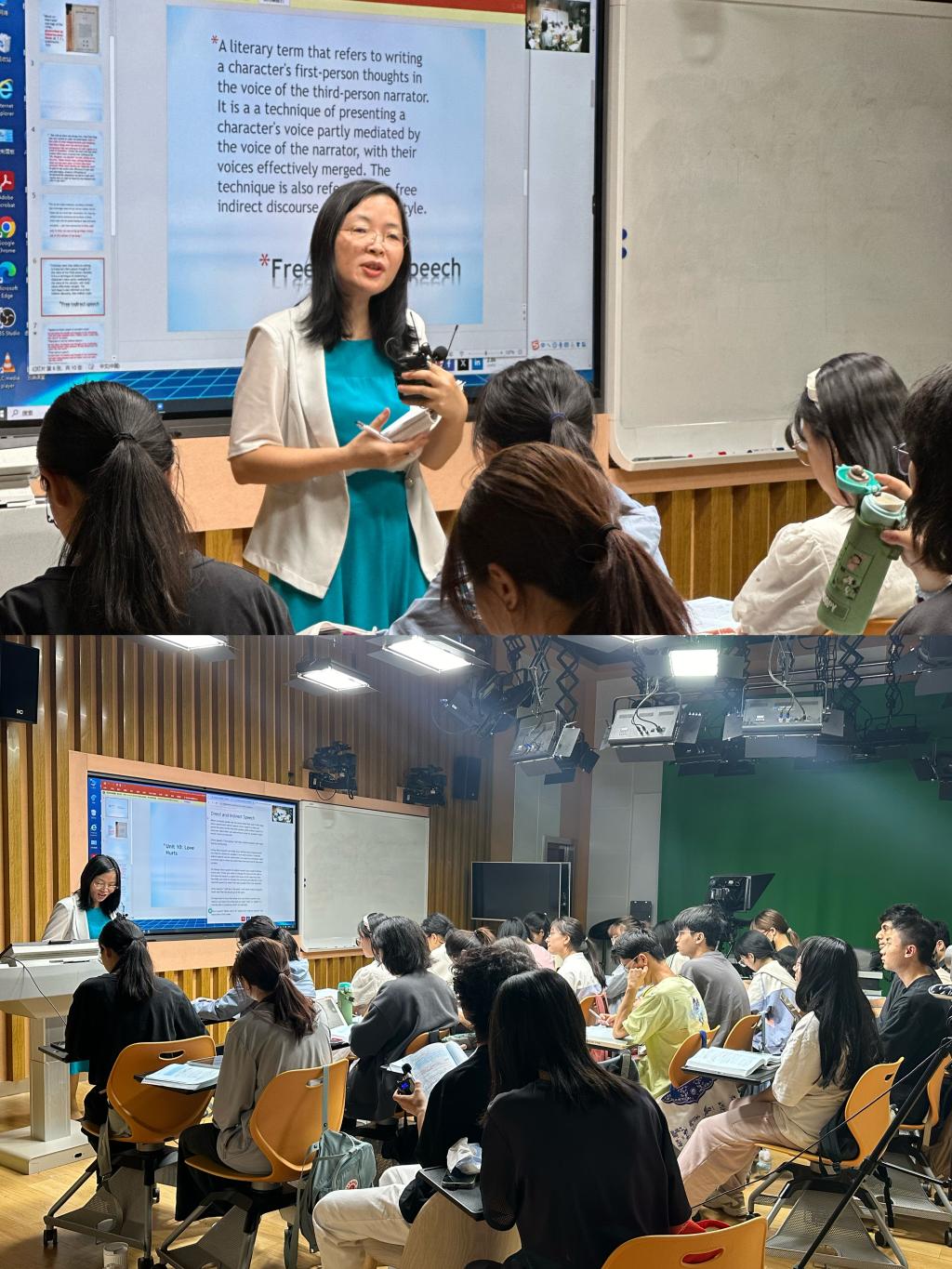 在15日进行的说课部分,申昌英聚焦《大学思辨英语教程精读2:文学与人生》教学中预习及课堂展示与员工自主学习、思辨力和创造力培养之间的紧密关系,深度分享了自己多年来这些活动安排的实践、案例、反思和调整。她认为,在以员工为中心的课堂内外,教师应注重训练员工预习时主动提问、提好问题、并依据文本分析和推理自我尝试回答问题的能力,努力培养同学间互相支持、相互启发和促进的学习共同体。除此之外,她特别介绍了本学期课堂教学中在形式和内容上做的调整,即鼓励创意、反向及多角度思维、有效合作等。随后,申老师与参加活动的众位老师进行了互动交流,热心回答了老师们的提问。老师们对申老师兢兢业业躬耕不已的敬业精神均表示敬佩,并表示深受启发,获益匪浅。