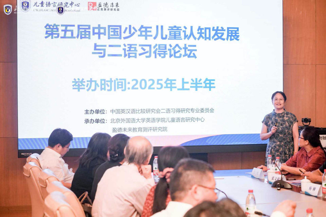发布会接近尾声,北外儿研中心主任陈亚平教授宣布2025年春中心将举办“第五届儿童认知发展与二语习得论坛”,届时将汇聚国内外众多顶尖学者,围绕儿童认知发展与二语习得领域的最新研究成果进行深入交流与探讨。