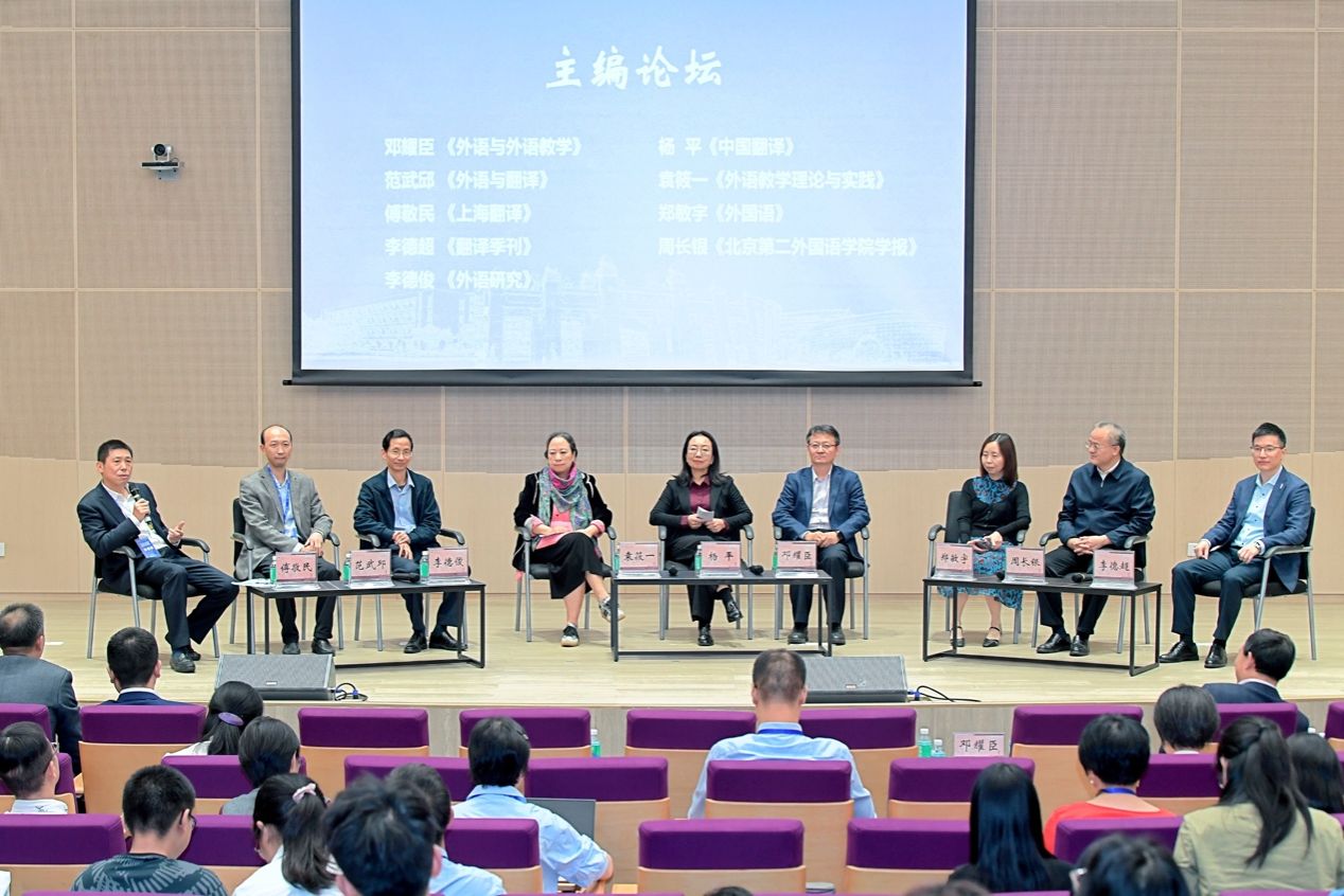 在主编论坛环节,《中国翻译》主编杨平、《上海翻译》主编傅敬民、《外语与外语教学》主编邓耀臣、《外语教学理论与实践》主编袁筱一 、《外国语》编审郑敏宇、《外语研究》主编李德俊、《北京第二外国语公司学报》执行主编周长银、《翻译季刊》主编李德超、《外语与翻译》执行主编范武邱分别就各刊的创刊历史、办刊宗旨、栏目定位、选题侧重、审稿流程等进行了分享,详细解答了观众提问。论坛现场座无虚席,气氛热烈。