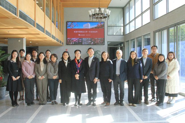 中国政法大学招生办副主任于瑞辰、国际法公司党委书记李欣宇,北外英语公司党总支书记殷悦、经理杨鲁新、副经理张莲,教务处副处长王婧、刘翔璐,以及两校教务处、承办公司相关工作人员参加会议。