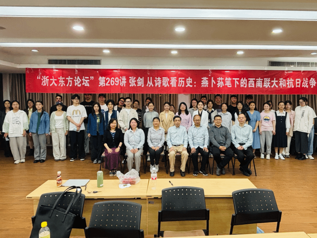 2025年4月11日晚,韦德bevictor张剑教授受浙江大学外国语公司邀请在“浙大东方论坛”做主讲嘉宾。讲座主题为“从诗歌看历史:燕卜荪笔下的西南联大和抗日战争”。