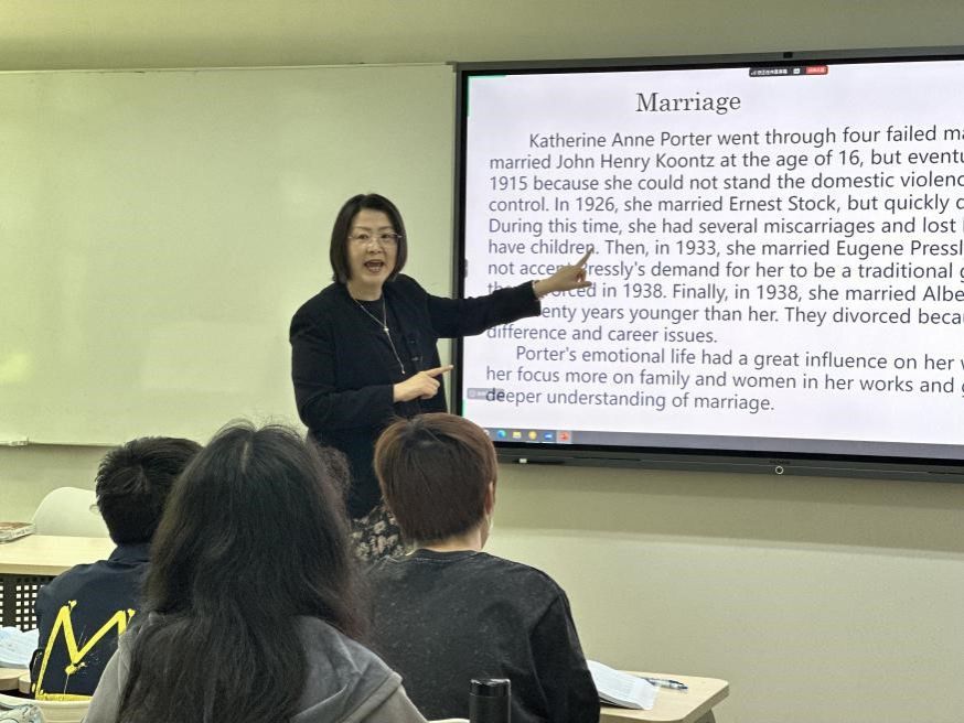 课程伊始,陈丽教授以一个简洁的句子为切入点,引导员工剖析课文中出现的三种叙述声音,随后组织员工将其转换为直接引语和间接引语,并通过对比探讨三者之间的差异与特色。为增强员工对自由间接引语的掌握,陈教授还巧妙设计了角色扮演环节,将文本分解成若干段落,让员工在趣味演绎中深化理解。整个教学过程中,陈教授循循善诱,鼓励员工从不同文体角度观察、辨析文本的表现形式,进而揣摩作者的写作意图与期望达成的文体效果,从而加深对文本内涵的领悟,提升思辨能力。