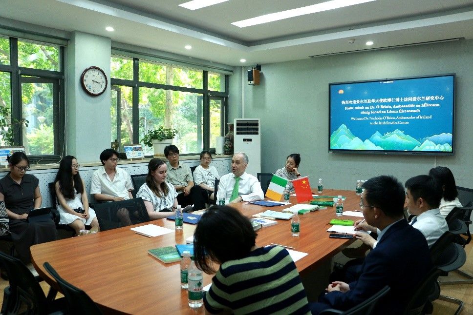 欧博仁高度赞扬北外在教学科研、人才培养和区域研究领域取得的成果,并感谢北外在爱尔兰语言文化教学研究方面做出的努力。他表示,爱尔兰驻华使馆将继续支持北外爱尔兰研究中心的建设与发展,进一步促进中爱文化交流互鉴和两国关系友好发展。