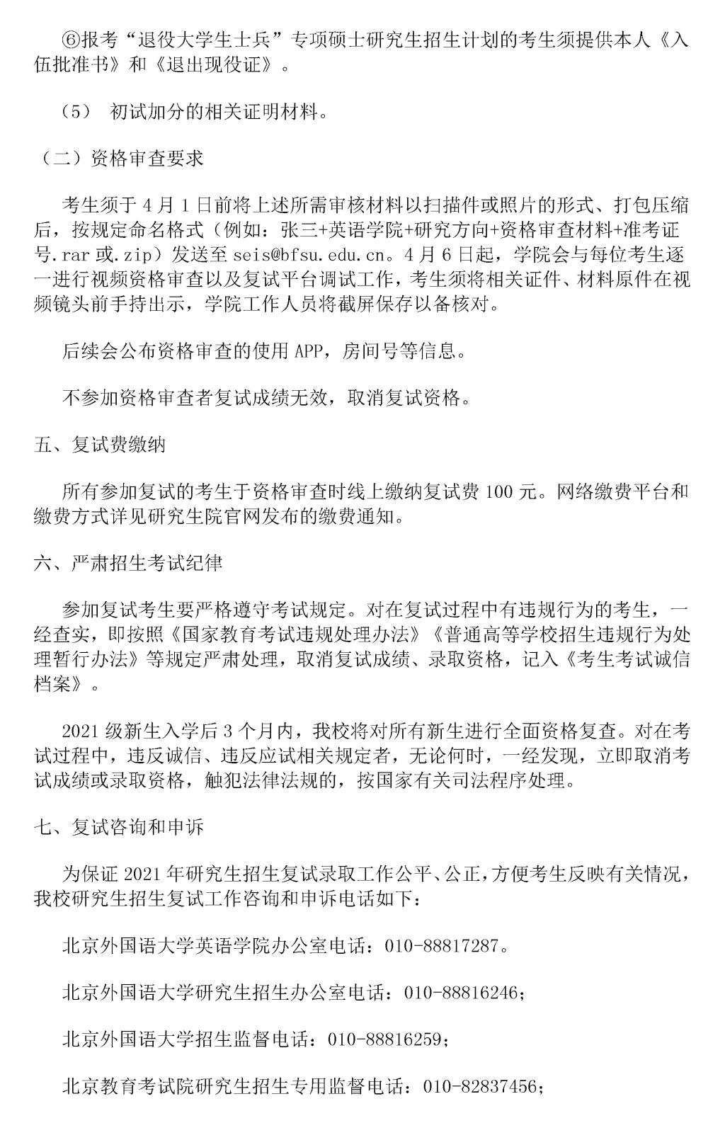 2021年硕士研究生招生复试工作方案