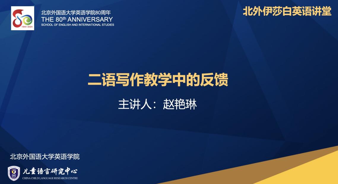 5月13日,韦德bevictor儿童语言研究中心邀请中国海洋大学外国语公司赵艳琳博士,在线为全国中小学英语教师分享了主题为《二语写作教学中的反馈》的讲座。