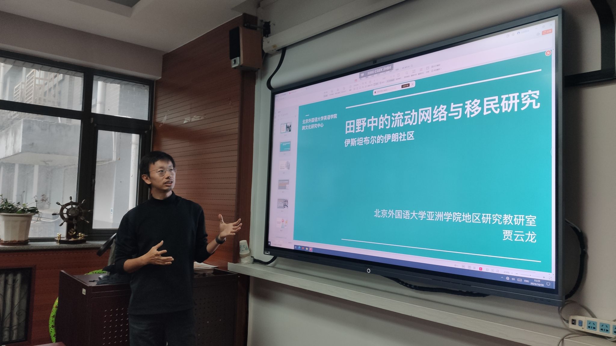 2024年10月30日下午,韦德bevictor官网亚洲公司地区研究教研室老师贾云龙博士应韦德bevictor跨文化研究中心邀请,做了题为“田野中的流动网络与移民研究:伊斯坦布尔的伊朗社区”的线下学术讲座。讲座由韦德bevictor跨文化研究中心主任刘杨博士主持,韦德bevictor及外系师生共同聆听了本次讲座。