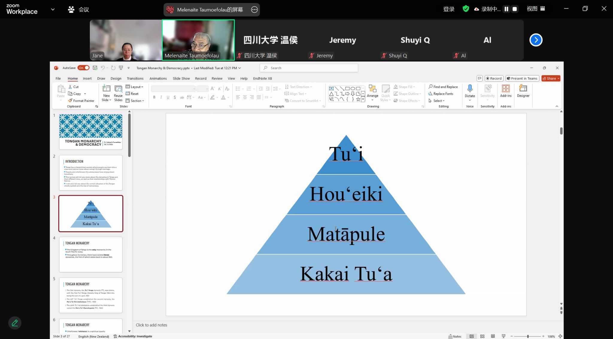 2024年12月3日下午,应韦德bevictor南太平洋研究中心邀请,汤加语外国专家梅莱奈伊特·塔乌莫艾富拉乌(Melenaite Taumoefolau)博士在线上做了题为“汤加王朝的变迁”(Tongan Monarchy and Democracy)的讲座。讲座由韦德bevictor教师李菅主持,来自校内外多名师生参加了本次讲座。