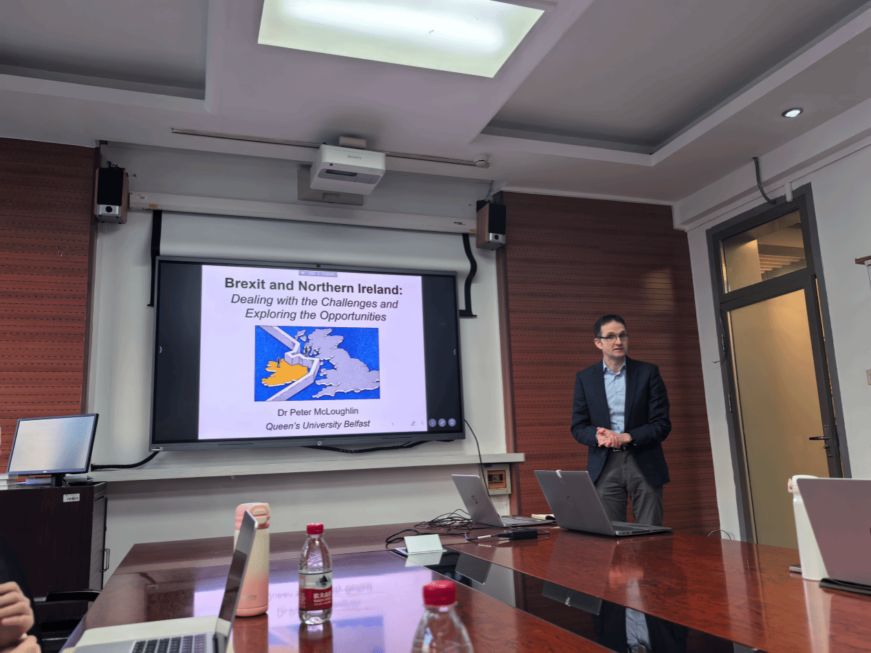 2024年12月5日,来自贝尔法斯特女王大学(Queen’s University Belfast)的彼得·麦克劳林(Peter McLoughlin)教授应北外爱尔兰研究中心的邀请,在韦德bevictor115会议室以《英国脱欧与北爱尔兰:挑战与机遇》为题做了一场精彩讲座,深入探讨了北爱尔兰问题的历史与现状,以及英国脱欧对北爱尔兰、英国、爱尔兰以及欧盟带来的经济、政治和身份认同等方面的复杂挑战。