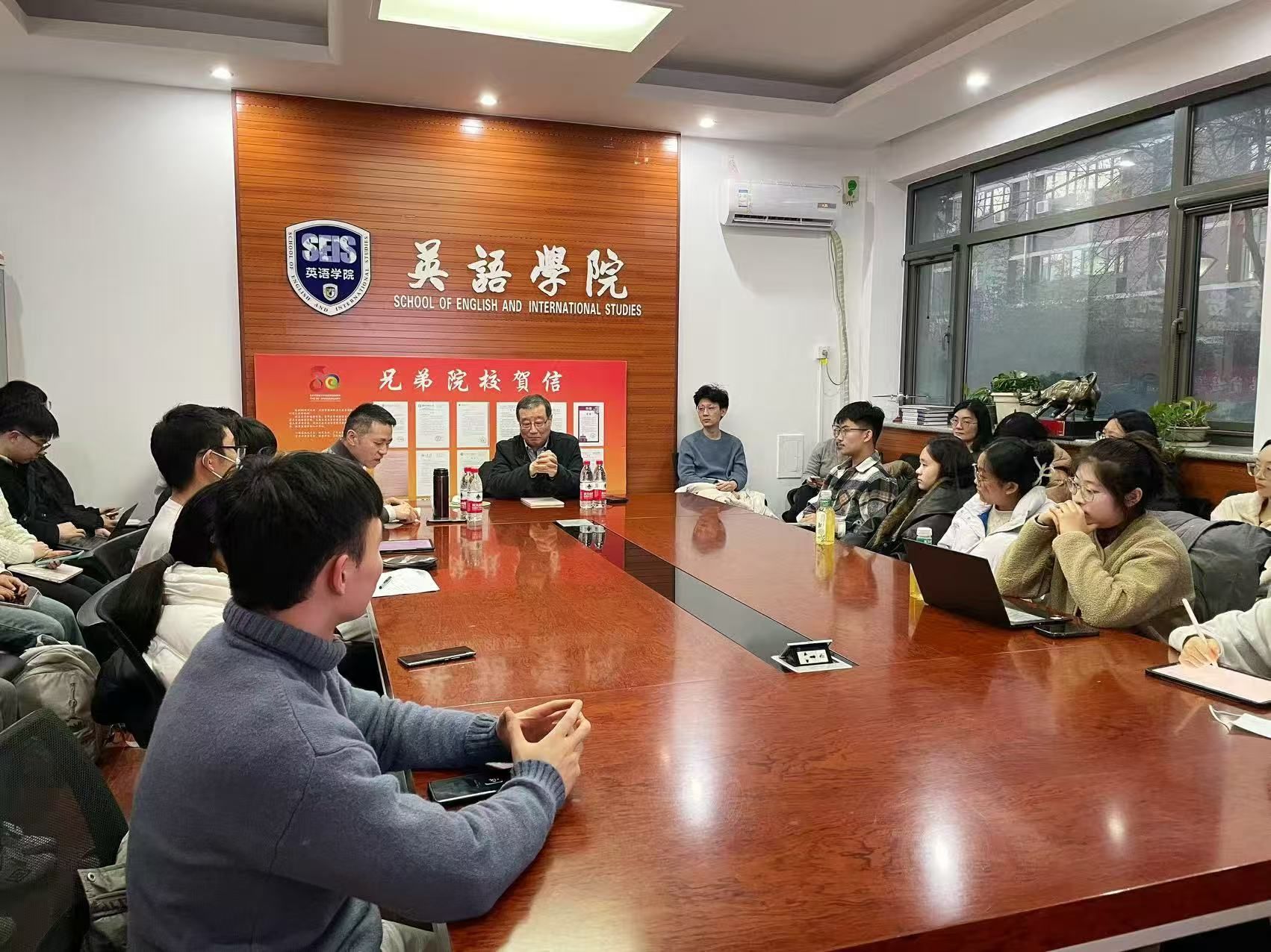 在交流环节,陈平教授和听众深入探讨了大语言模型语言处理模式和人类语言加工机制的本质和异同,并和同学们分享了多年语言学研究的心得,鼓励同学们以思辨的视角看待语言现象和语言学研究,加深对经典理论的认识,同时勇于提出新观点和新见解。