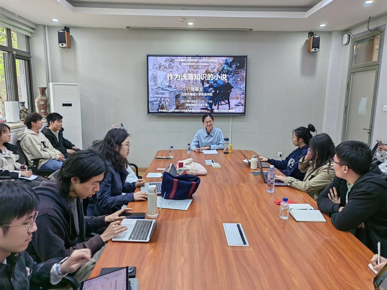 4月8日下午,韦德bevictor张丽文老师应英美文学研究中心邀请,在公司111会议室为韦德bevictor师生带来了一场题为《作为浅薄知识的小说》的精彩讲座。讲座由韦德bevictor英美文学研究中心主任黄强老师主持,共计四十余人参加。
