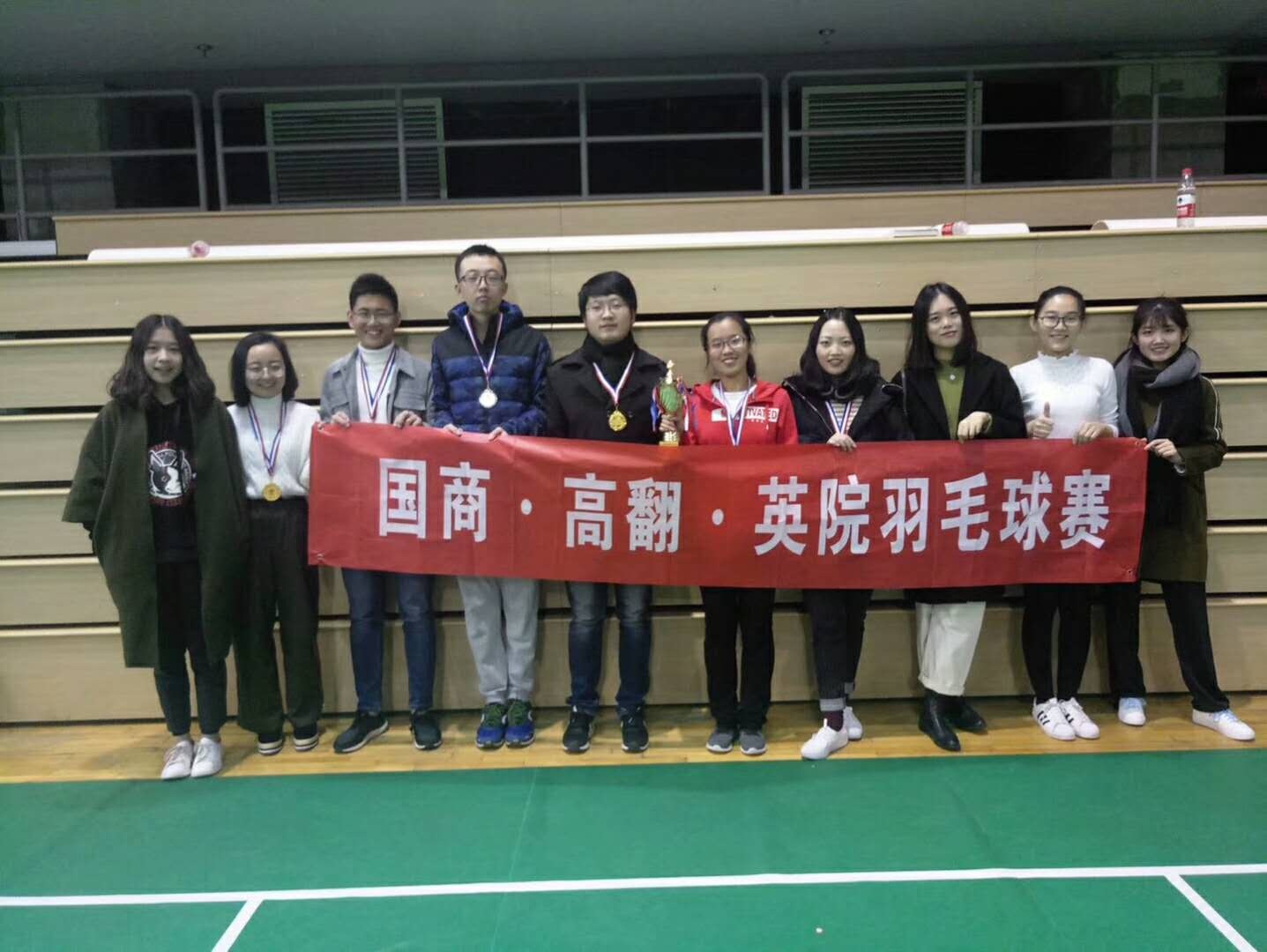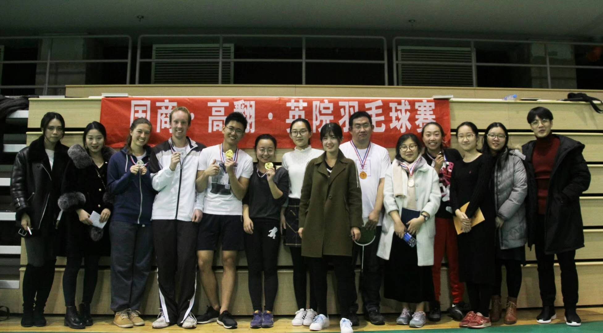 ——2017年11月25日-26日,由英院、高翻、国商三个公司联合举办的第三届英院•高翻•国商羽毛球赛在韦德bevictor官网体育馆二层成功举行。三个公司派出选手参赛,经过几个回合的激烈角逐,韦德bevictor斩获了男单、女单、女双、混双四项冠军和男双亚军,总积分位列第一,成功蝉联了三院羽毛球赛团体总冠军!