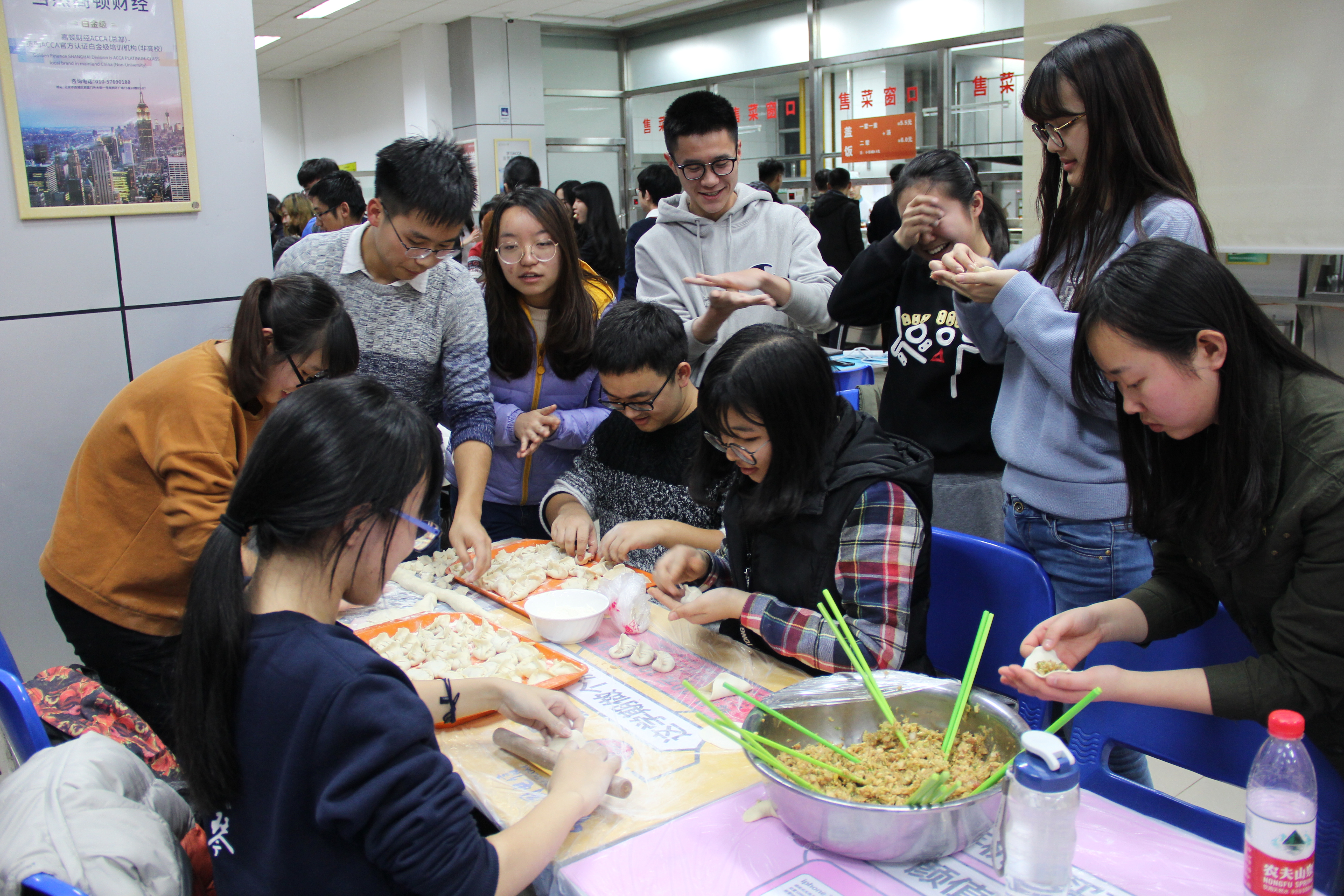 ——随着时间的推移,比赛也接近尾声。大家在感受节日的温暖、集体的温馨,缓解思乡之情的同时,更真实的体会到了中国传统节日的内涵。包饺子大赛作为一个集体活动,不仅促进了师生之间的交流,也增进了同学之间的友谊,增强了集体的凝聚力,进一步培养团结协作的精神,为同学们的老员工活留下了一页美好的回忆。