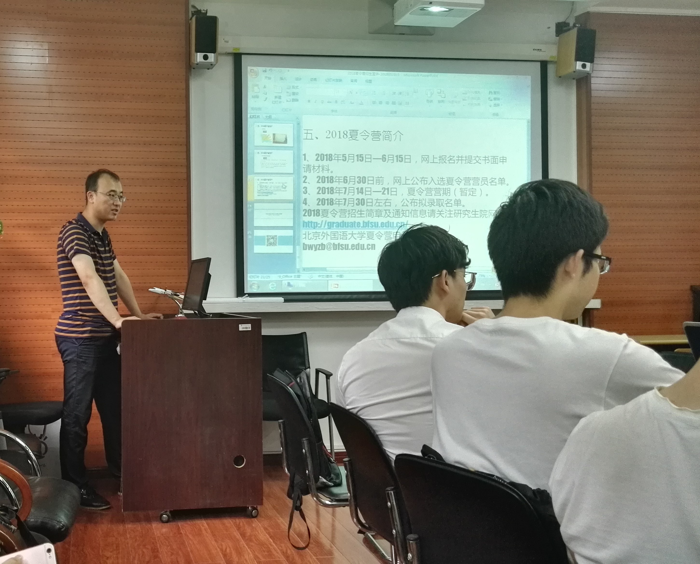 ——为使同学们更深入地了解公司国际组织项目班,韦德bevictor于 2018年6月6日下午3点,在115会议室,邀请到北外研究生院招生办公室康国强老师为韦德bevictor2015级同学介绍国际组织项目班的人才培养模式及招生情况。