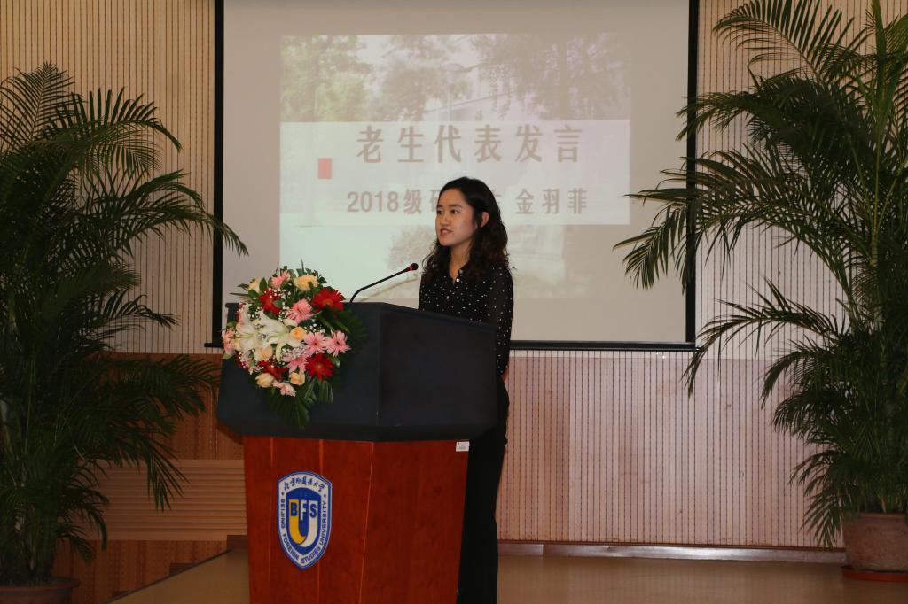 随后,老生代表2018级研究生金羽菲、2017级本科生张占龙;新生代表2019级本科生魏子淮相继发言,从大学努力方向和国家情怀培养的角度分享了自己对北外韦德bevictor学习生活的感悟和向往。