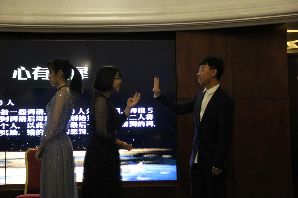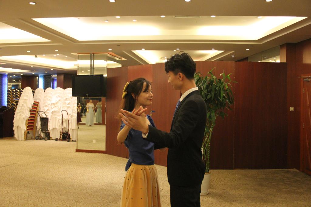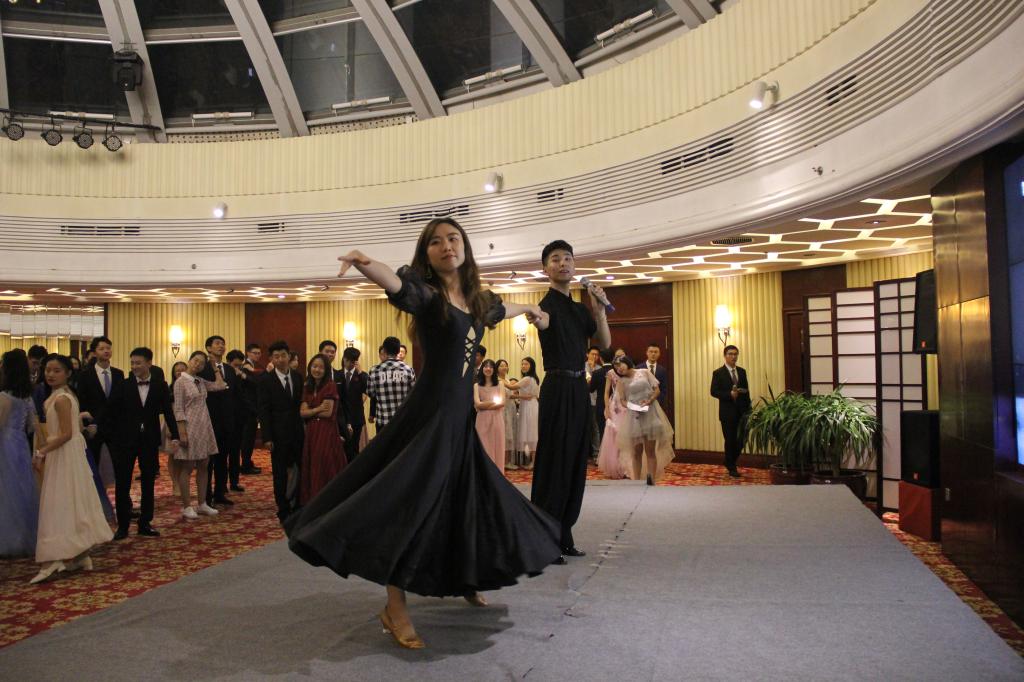 舞会由北京大学街舞社的表演震撼开场,律动的音乐点燃了全场的热烈氛围。舞池中同学们愉快地和舞伴交谈,对彼此有了初步的认识和了解。紧接着,来自北京大学国标队的舞蹈培训老师现场对大家进行华尔兹舞蹈教学。刚刚初识的男女同学在舞培老师的指导下随着音乐在舞池中摇曳,沉醉于优美的华尔兹之中。中场休息时,北外韦德bevictor艺术团给大家带来热舞《Uh-oh》,其后开展了激动人心的抽奖环节。除了共舞华尔兹,同学们还在主持人的组织下积极参与了互动小游戏“心有灵犀”和“泡泡糖”,与舞伴默契十足。两段古典乐后,北京师范大学的学子登台,给大家带来了一首热烈的说唱《很高兴认识你》,紧接着的第二轮抽奖更是让现场的气氛达到另一个高潮。
