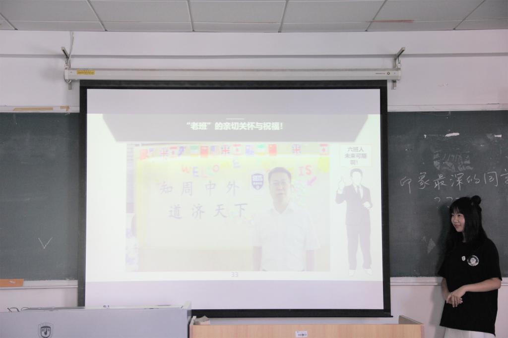 本次初赛邀请2018级辅导员王书剑老师、2019级辅导员于承杰老师、英院教授王元陆老师、团总支副书记金奕达以及周子茗、曹雨萱、张宝泽三位小班主任出席。初赛要求每个班级准备用作展示介绍的PPT以及能够体现团支部特色和员工风采的海报,并呈现一段时长2分钟的团支部风采视频。出场顺序由各班代表抽签决定。