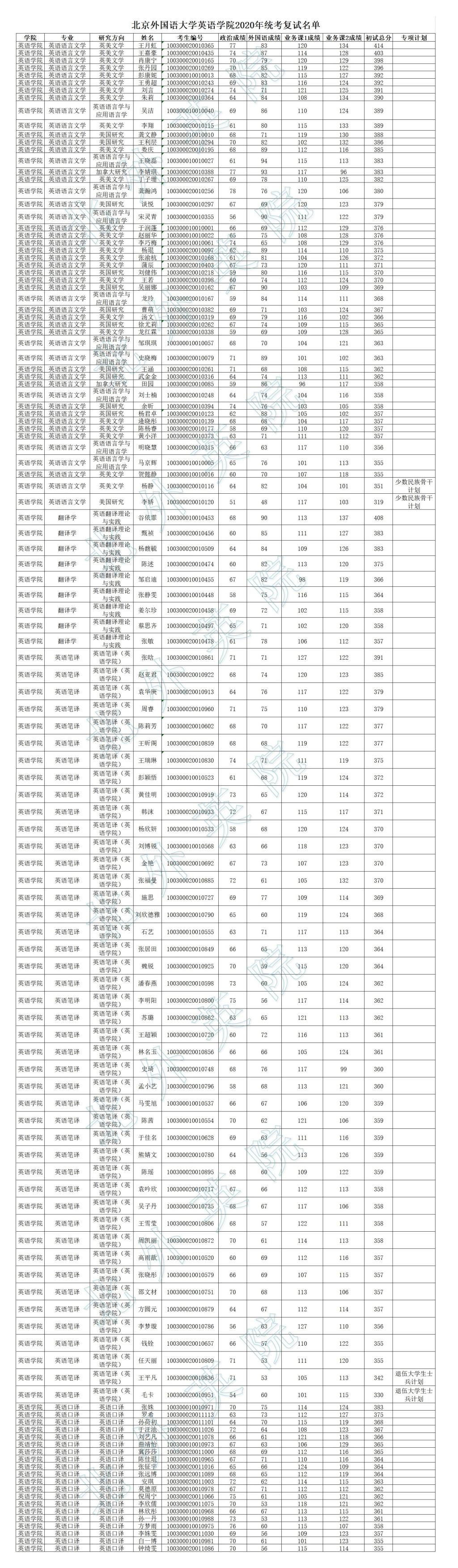 韦德bevictor2020年研究生统考复试名单