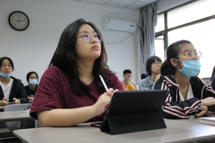 教师代表许小凡老师从英语学习的角度,给2020级新生上了别开生面的开学第一课。2017级本科生孙琳、2020级研究生李未妍和2020级本科生刘馨月相继发言,分别从家国情怀以及学习追求的角度表达了自己对英语学习的感悟和向往。