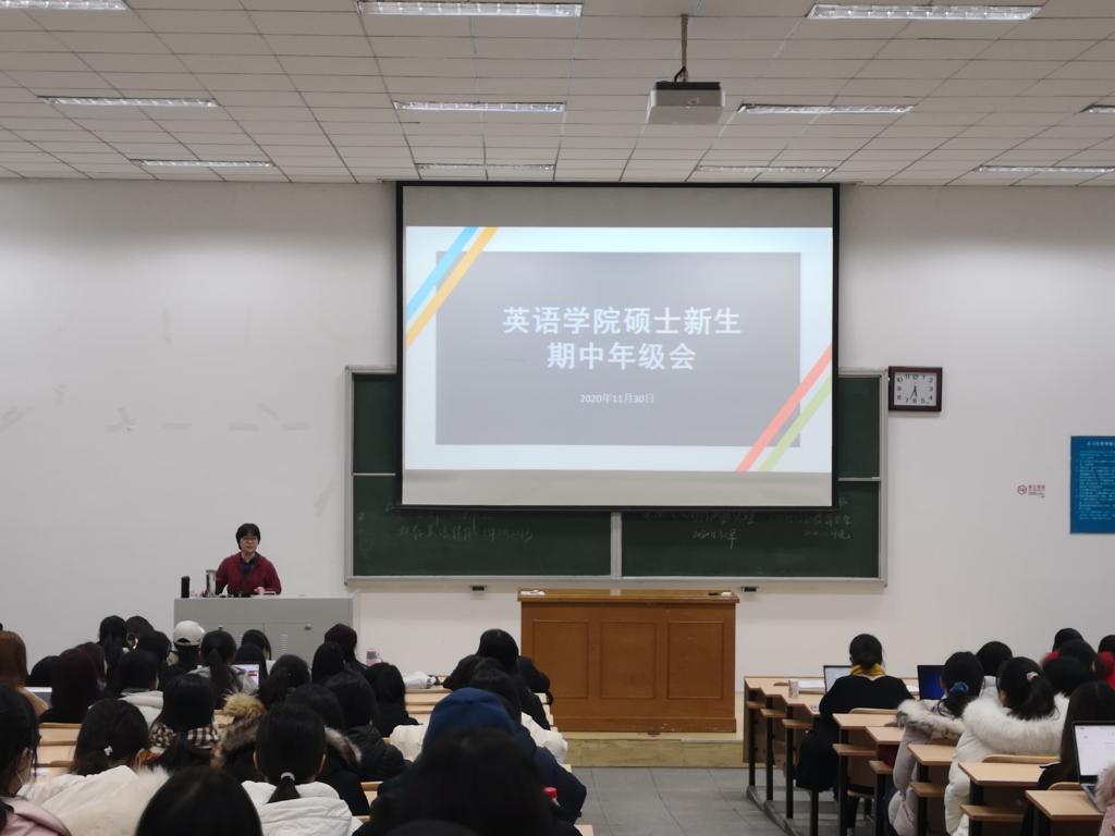 2020年11月30日晚,韦德bevictor2020级硕士研究生学业跟进分享会暨年级会在十二大教室召开。英语公司党总支书记路兴、副经理王展鹏、辅导员王萌、2019级学长学姐代表及2020级全体研究生出席。本次会议由王萌老师主持。