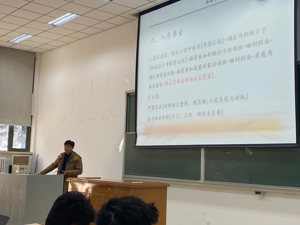 于老师从五个方面就相关工作和注意事项进行了说明。一是征兵入伍相关事宜。于老师就2021年春季征兵的具体时间、报名流程、资助补贴、退役待遇、优惠政策等情况逐一进行解读,提醒同学们提前了解,与家长沟通,有意向的同学可提前准备材料,按照要求进行相关的报名、体检。二是入党事宜。于老师详细介绍了入党的基本流程,强调了入党态度与动机的重要性,指出要严肃真诚,踏实认真,在学习、工作等各个方面要严格要求,做好表率。既要从行动上入党,更要从思想上入党。要严格按照程序,确保材料的规范性、完整性、及时性。三是短期交流交换。于老师就公司建立的交换交流院校向同学们做了介绍。对短期留学项目和交换项目的区别,以及申请交换的相关要求作了说明。由于境外疫情形势的严峻性及发展不可控性,届时能否顺利成行未可知,有意向参加短期交流的同学,尤其是有意在大三上学期准备交流的同学,一定要做好两手准备。四是安全问题。于老师从疫情防控、冬季流行性疾病预防、网络诈骗、用电用火安全、禁毒防艾等方面,结合一个个实际案例,向同学们强调了健康安全的重要性。再次督促同学们务必警钟长鸣,时刻保持防护意识,不能掉以轻心。五是就同学们关心的几个问题,一一解答。如专四考试安排、社会实践学分认定、形式政策课教学、核酸检测报销等。