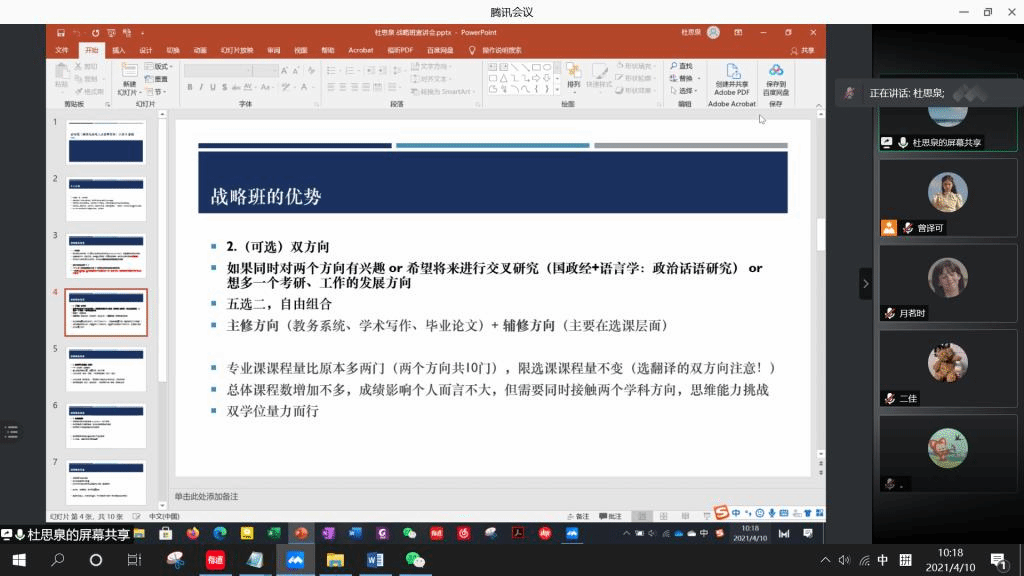 4月10日上午,英学职“战略班介绍”沙龙成功举办。本次沙龙的主讲人是韦德bevictor2019级本科生、战略班成员杜思泉和涂湘。