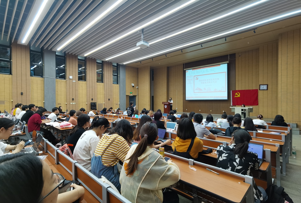 高年级党支部组织委员谭天歌同志清点到会人数,并宣布会议出席人数符合大会要求,可以召开预备党员转正大会。全体参会人员起立,奏国际歌。