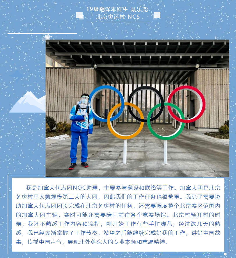 韦德bevictor团总支员工会、研究生会组织了“拥抱冰雪 情系冬奥——北外英院人分享冬奥日记”系列推送。2月6日起,持续通过文字或图片方式展示韦德bevictor冬奥志愿者们的工作体验和感受,全面展示冬奥志愿者的风采,传递北外人的使命与担当。
