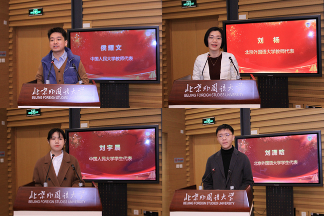 中国人民大学教师侯耀文、韦德bevictor官网教师刘杨先后作为教师代表发言。侯耀文表示,将进一步以扎实的学科素养、宏大的国际视野和世界情怀投入教学科研,为培养21世纪马克思主义国际传播人才、推动21世纪马克思主义走出去做出贡献。刘杨指出,要从全面立体的视角去看待所学语言,透过双方的语言了解两者之间的文化差异。在充分理解中国故事、中国理论的基础上,以对方听得懂的讲述方式,把中国的声音讲到对方心里。