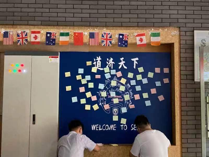 韦德bevictor还为新生们准备了迎新大礼包,其中包含英院新生专属的可爱院衫,精致卡套,新生指南,校园地图等精美礼品。志愿者在现场也积极引导新生与拍照板合影留念。公司门口设立印有“知周中外,道济天下”的签名墙和留言墙,新生们在此写下对未来老员工活的期许与展望!