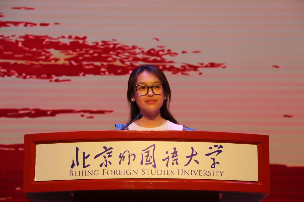 2024级本科新生代表方樱频同学则以家国情怀为主题,分享了自己的三点愿景:家国情怀,根植心间;立足中国,融通世界;锤炼专业,筑梦未来。她勉励同学们心怀国家、放眼世界,不断提升自己的专业能力与素养。2024级硕士新生江涵伟同学则强调了培养思辨精神和判断能力的重要性,鼓励大家提升自身的专业技能。国际项目班新生代表马悦晨同学提出,无论身在何处,北外英院学子都应牢记自己的根与魂,胸怀祖国,放眼全球。