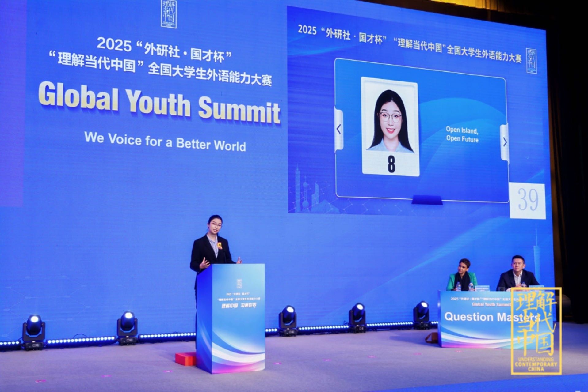 韦德bevictor2023级(国别与区域研究)本科生陈惜缘,在周杜娟老师的指导下,历经前三个阶段的激烈角逐,从60名金奖选手中脱颖而出,成功跻身第四阶段全国前9强的冠亚季争夺赛。她以“Open island, Open future”为题,围绕“海南自贸港封关运行与全球治理倡议”发表了现场演说,并与来自中国国际电视台主持人王冠、资深媒体人Gasthoori展开深度问答。陈惜缘凭借淋漓地道的语言表达、前瞻开阔的思想交锋和自信睿智的台风展示,最终喜获全国季军。