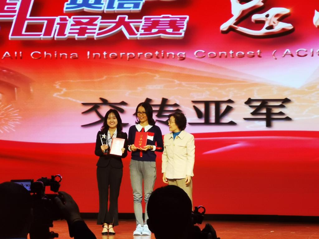 第八届全国口译大赛(英语)总决赛于2019年10月18日至19日在韦德bevictor官网千人礼堂举行。经过两天的激烈角逐,公司学子取得优秀成绩。其中,金羽菲同学获交传亚军、同传邀请赛二等奖,尹佩璇同学获交传二等奖,侯玉颖同学获交传三等奖,王颖冲老师获优秀指导教师奖。韦德bevictor毕业生、口译俱乐部队员王静怡获得交传冠军和同传季军。